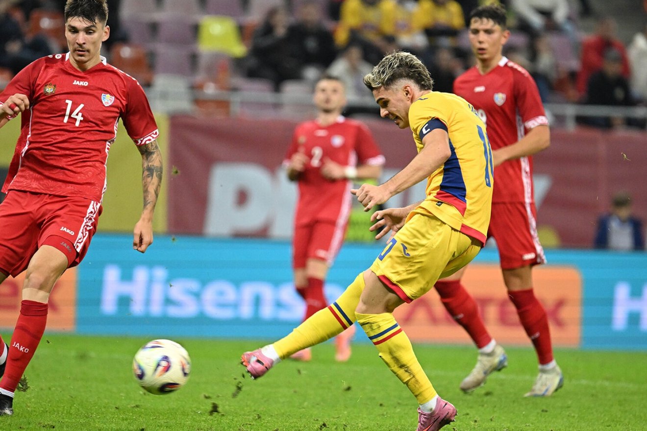 A román csapat kiválóan kezdett és már a 12. percben betalált, szögletet követően Louis Munteanu a rövid saroknál fejelt a hálóba. Ezután is támadásban maradtak a hazaiak, egy nagy védelmi hibát kihasználva Ianis Hagi közel volt az előny növeléséhez, ám a felső léc megakadályozta ebben.
